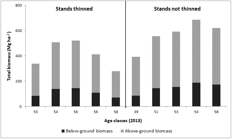 Forest biomass, reforestation, carbon stock, silvicultural interventions, stand density.Abstract