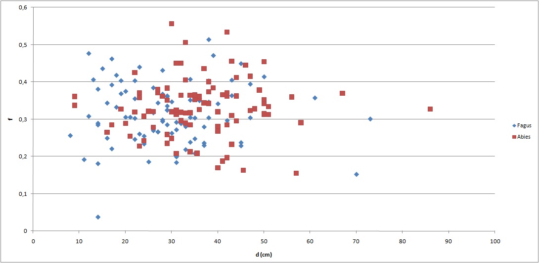 beech, when their diameter is the same. Fir has a mean form factor of 0.331, while beech has a mean